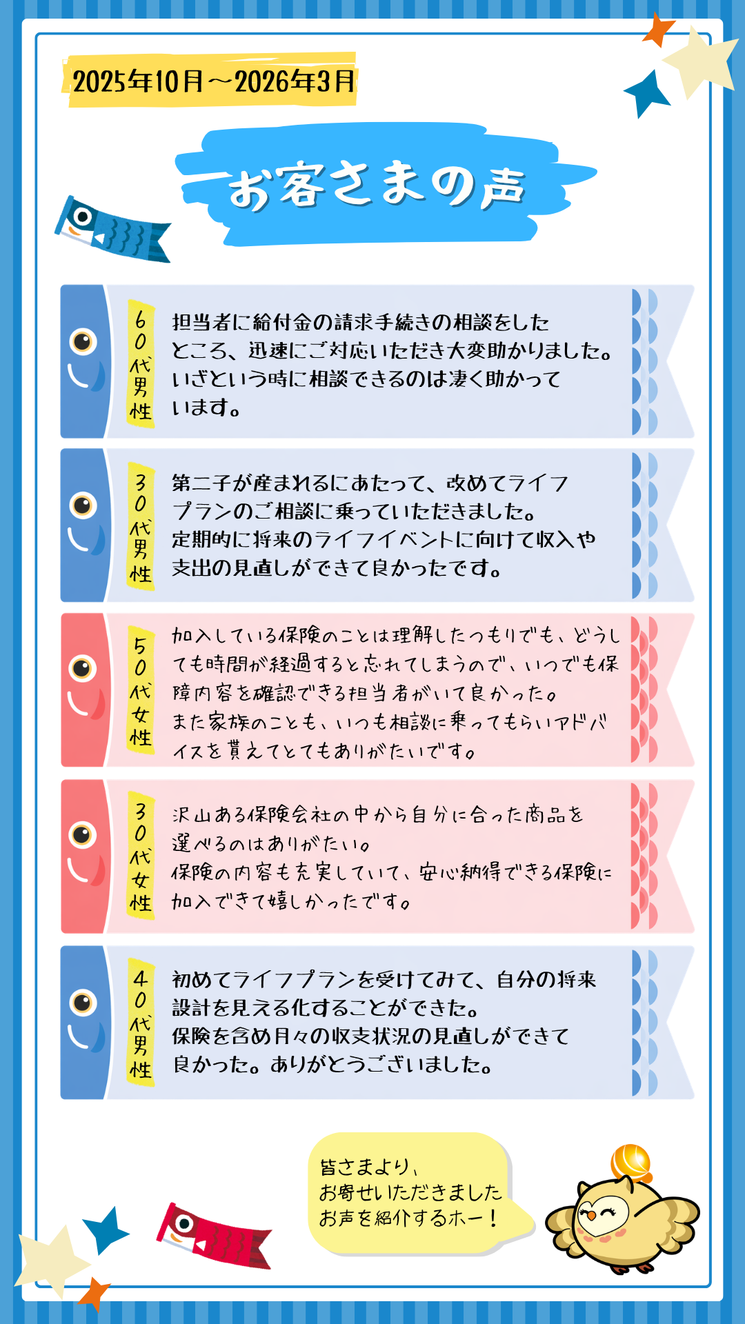 「お客様からのお声」掲載(2025年10月~2026年3月)